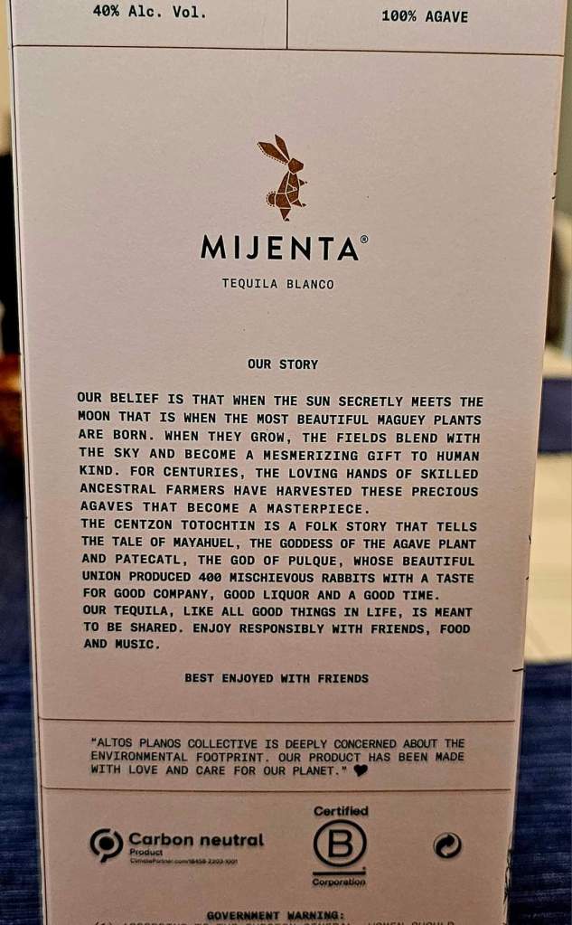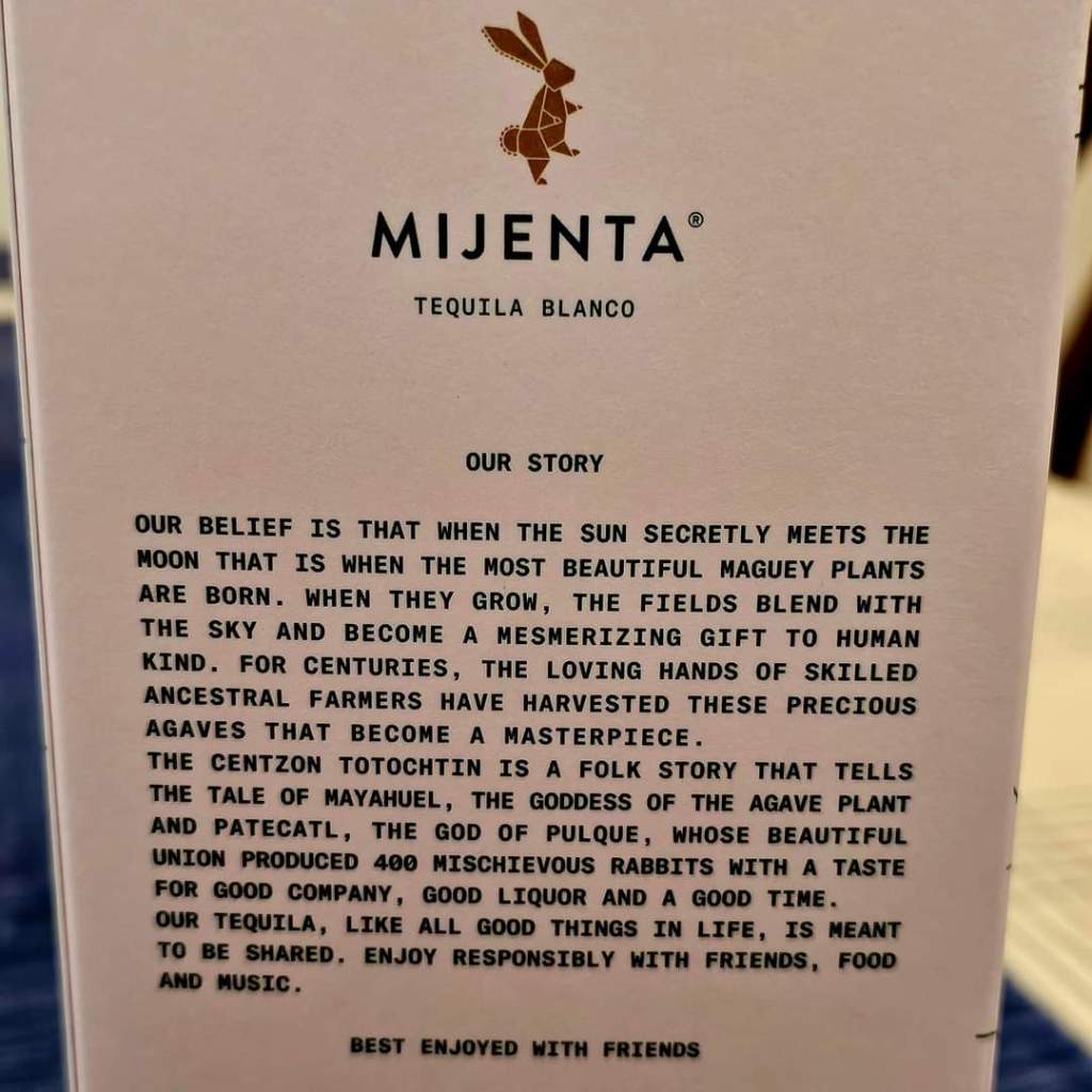 Mijenta’s brand logo is a rabbit, taken from the “400 Rabbits” (Centzon Tōtōchtin) Aztec myth about the children of the goddess of agave, Mayahuel, with each representing a different type or stage of intoxication. When a person drank too much, they were believed to become temporarily possessed by one of Mayahuel’s children.