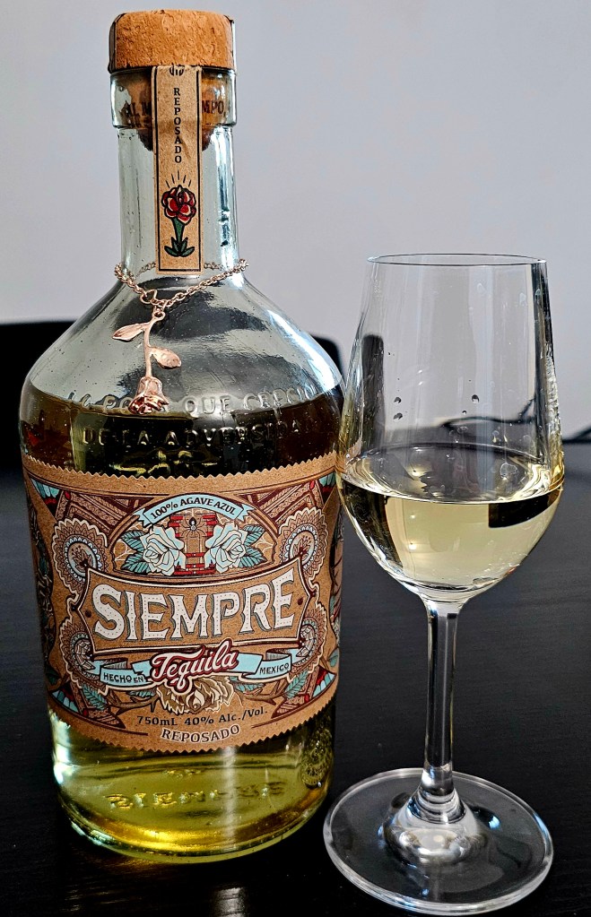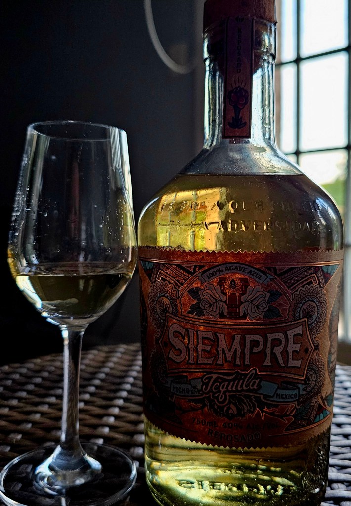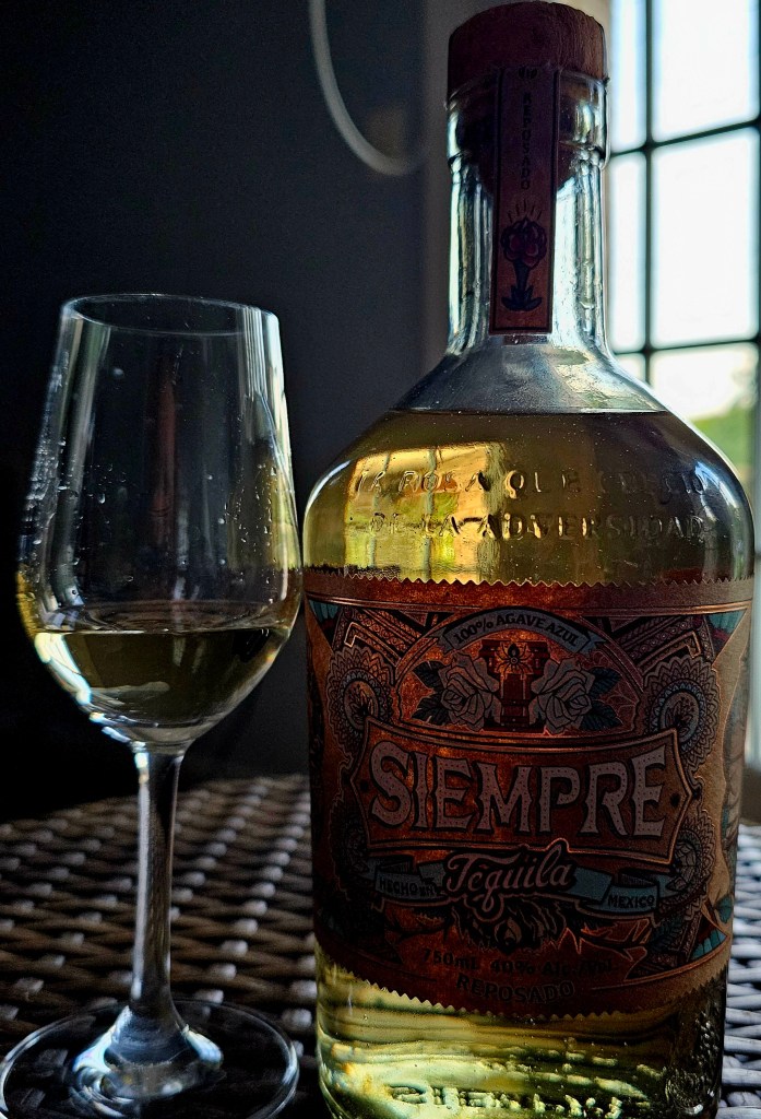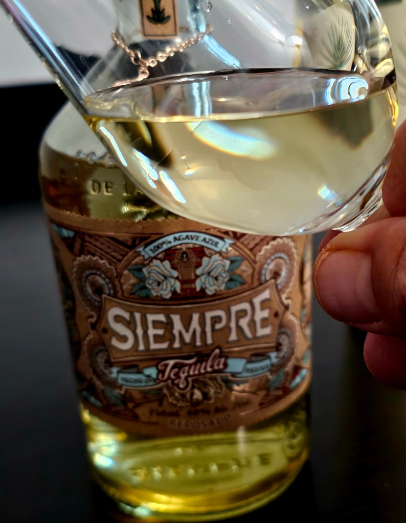 NOM 1414 (Vintage/Lot: 11/2023; Bottle #4355)- A light yellow (straw) color, Siempre reposado’s aromas are light initially and, at first, were a bit hard to discern clearly, but opened up after the tequila rested in the glass and also on subsequent pours after the bottle had been opened, even just a day later. Its aromas include mellow fruity (hints of cherry & raisin, maybe pear, perhaps some light/understated citrusy notes), floral, vanilla, barrel & oak influence including vanilla and light whiskey, and sweet baking spices/cinnamon/nutmeg and cooked agave aromas. These aromas are also on the palate, which is defined by lovely fruity notes, cinnamon/sweet baking spices, and honey sweetness. This sweetness is balanced and not particularly peppery or sharp, though there is a nice warming effect as you swallow the tequila. Siempre reposado has a creamy mouthfeel for a bit mid-sip, though not as full as other reposados.