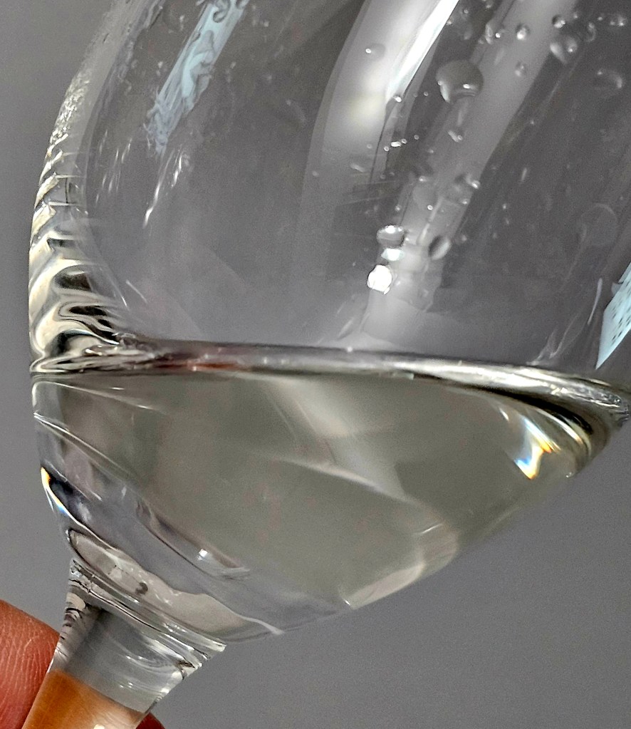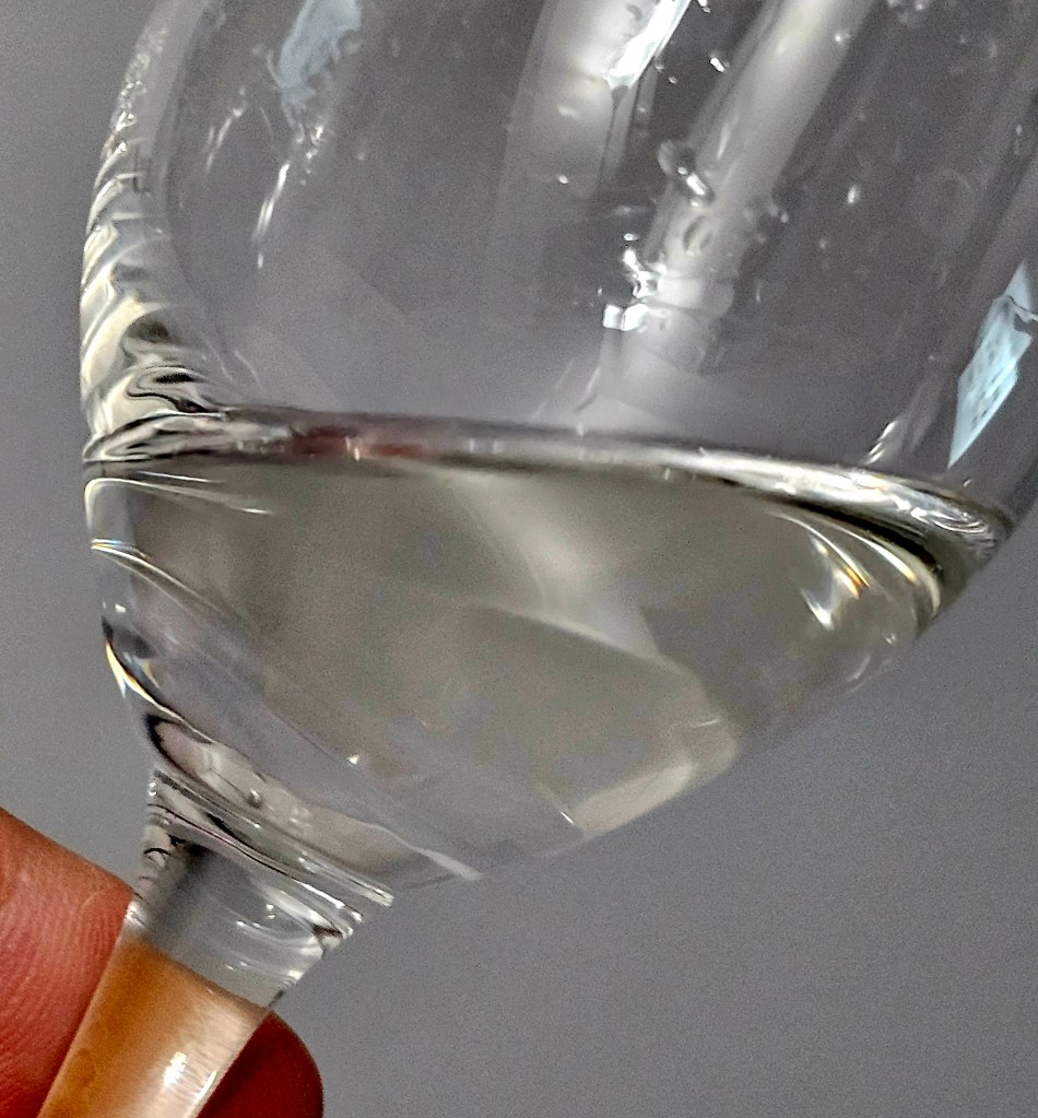 On sipping, it still has a strong pepperiness and alcohol hotness as well as a puckering anise and vegetal bitterness and astringency that hits the back of the palate and tongue. There is a sweetness too, but it is overwhelmed by the astringency and pepperiness. The mix of flavors isn’t harmonious.