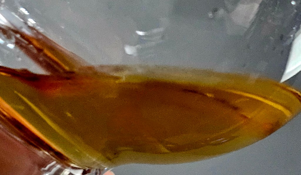 *This single malt has decent viscosity in the glass, but it doesn’t coat the sides for very long. It has a nice mouthfeel with a fairly short, briefly creamy, finish.