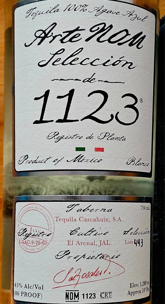 With aromas of roasted tropical fruits, cinnamon and baking spices, smoked pepper, mint, citrus, and butter, ArteNOM 1123’s flavor profile is defined by black pepper, cinnamon, vanilla, anise, mint, citrus, a vegetal quality, hints of smoke, nuts, and sweet potatoes. Bottled at 86 proof (43% ABV), this blanco is made from Blue Weber agaves steam roasted in brick ovens for 30 hours before having their sugars extracted with a roller-mill. It is then double distilled in copper and steel pot stills. Coming out of the still at 56% ABV, the proof is lowered with demineralized water.