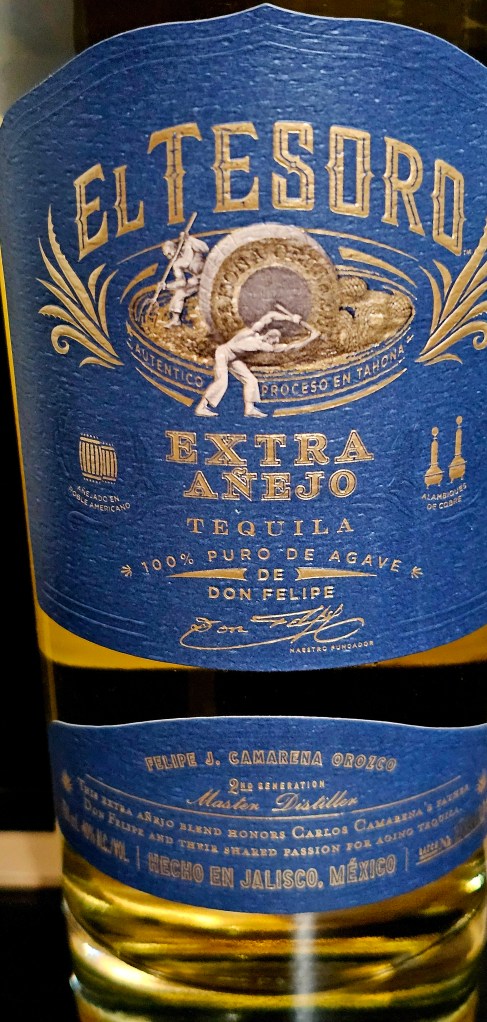 El Tesoro is one of the flagship brands produced by tequila master distiller Carlos Camarena from his distillery (NOM 1139) La Alteña. Named after his father, the late Don Felipe Camarena, El Tesoro uses Weber Blue Agave from Los Altos, Jalisco, crushed by a volcanic stone tahona wheel (which is reproduced in miniature for its distinctive stone corks). The extracted agave juice (mosto) is open-air fermented in wooden tanks without agave fibers. It is then double distilled in copper pot stills and aged in American White Oak barrels formerly used to age bourbon. It is bottled at 80 proof/40% ABV using deep well water.