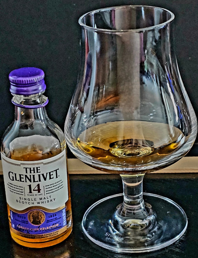 Glenlivet 14 is the first scotch whisky that I’ve had in a long, long time. The last time I had a scotch it was while I was an undergraduate student in an increasingly distant past. I don’t recall now specifically what scotch or scotches I last had were, but I’m sure they weren’t top quality selections. Earlier this year, I experimented with American single malt whiskies and blended malt whiskies produced by the Virginia Distillery Company (VDC), which definitely helped lay the groundwork for this jumping in to straight scotch. I’ve reviewed the VDC selections I sampled, the Signature Single Malt, Double Cask Reserve, Cider Cask Finished blend, and the Port Cask Finished blend, and also wrote an update post. But I’ll write soon a new retrospective post discussing my observations and experiences with malt whiskies now that I’ve gone through the gamut of liking them, not liking them, liking their aroma profiles but not really liking their flavors on the palate (mostly due to the malt), to everything in between. It probably didn’t help that I decided to delve back into whiskies after over a decade away with scotch instead of, say, bourbon or a whisky genre generally seen as being gentler (generalizing here, I know).