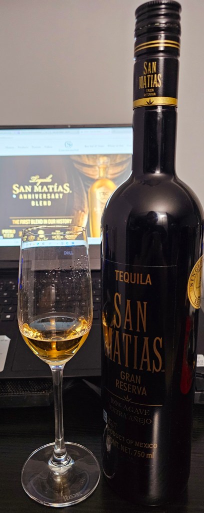 San Matías Gran Reserva Extra Añejo was one of the first extra añejo tequilas, debuting in 1993. Produced by Casa San Matías (Casa San Matias) distillery (NOM 1103), Gran Reserva is made using mature 7 to 10-year-old Blue Weber agaves that are cooked in stone/brick ovens for 48 hours at 194 degrees. The cooked agaves than have their aguamiel (sugars) extracted from the fibers using a roller-mill. The aguamiel is then fermented for 72 hours in open-air stainless steel tanks using natural, local yeast. The tequila is then double distilled using a stainless steel pot still at very low temperature before being transferred to new French Oak barrels to age for 3 years. The distillery is one of the few with a female master distiller (maestra tequilera), Rocío Rodriguez.