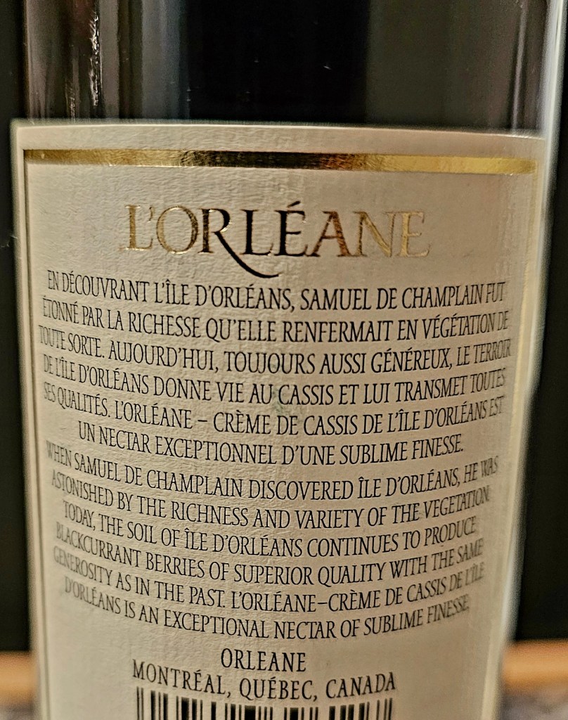 - 1/2 ounce (L’Orléane liqueur de cassis de l’Île d’Orléans using black currants grown on the Île d’Orléans near Ville de Québec/City)