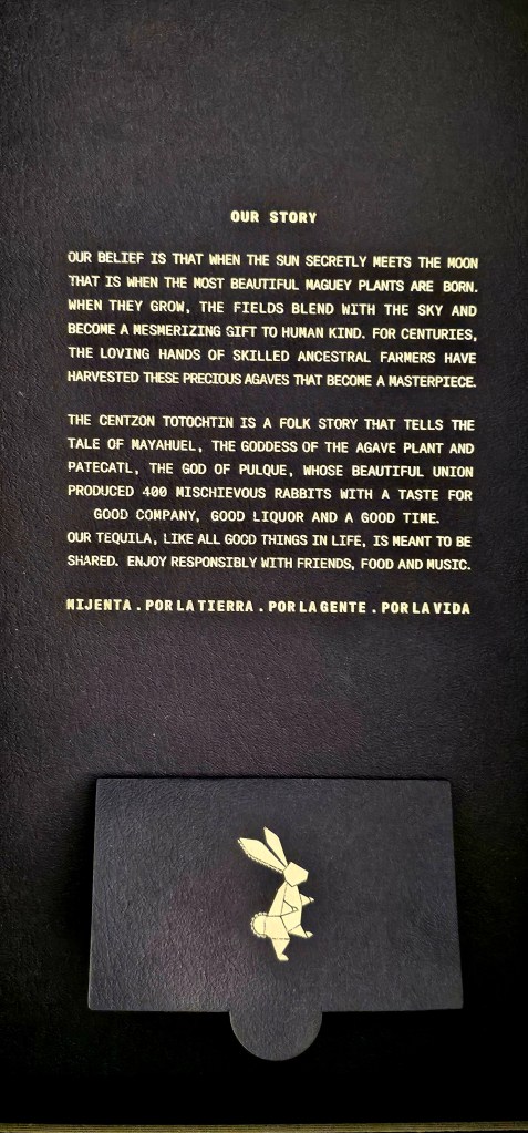 Mijenta’s brand logo is a rabbit, taken from the “400 Rabbits” (Centzon Tōtōchtin) Aztec myth about the children of the goddess of agave, Mayahuel, with each representing a different type or stage of intoxication. When a person drank too much, they were believed to become temporarily possessed by one of Mayahuel’s children.