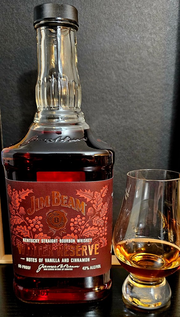 Aged for 6 years, finished in new toasted American White Oak barrels, and bottled at 86 proof (43% ABV), Jim Beam Winter Reserve is made from a mash bill of 77% corn, 13% rye, and 10% malted barley.