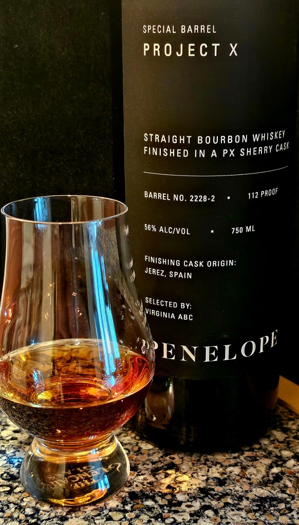 One response to “SHORT REVIEW: Penelope Project X – VA ABC, PX Sherry Cask Finished Straight Bourbon (Barrel 2228-2)”