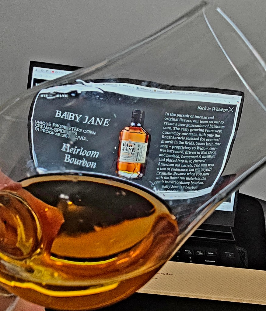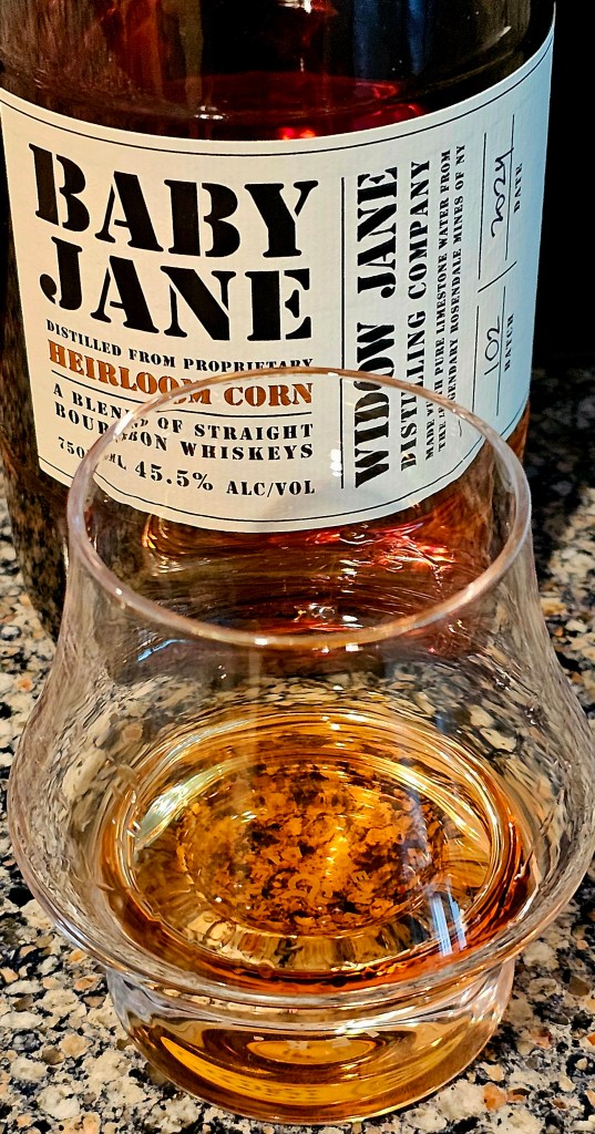 Baby Jane, a blend of straight bourbon whiskies, is made using a new hybrid corn, “Baby Jane,” genetically created by cross-pollinating Bloody Butcher & Wapsie Valley Yellow heirloom corns from upstate New York. This was done through close work between the distillery and local farmers beginning in 2013 & lasting over a decade. The corn is slow cooked before fermentation & it’s then distilled in 1,000 liter pot & column hybrid single pass stills. The 4-6-year-old Baby Jane bourbon is then blended with sourced Kentucky bourbon a few barrels at a time (small batch). It is non-chill filtered & bottled at 91 proof (45.5% ABV) using limestone-filtered mineral water from the Widow Jane Mine in Rosendale, New York, north of the distillery in Brooklyn.