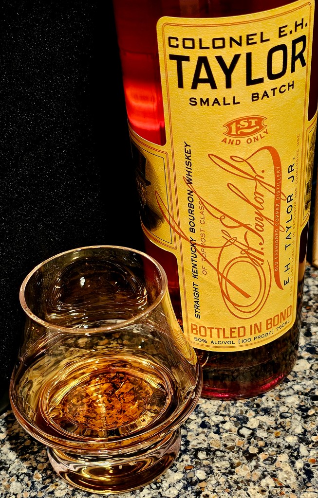 Tonight, I’m thoroughly enjoying my first pours of an E.H. Taylor bourbon (any bottle) with some friends – I’m amazed both at how fruity the aroma & flavor profiles are as well as the types of fruits that I’m pulling on the nose & the palate. For me, there’s a lot of tropical fruits (which is a bit shocking to me, actually, in a bourbon that is not cask finished in a rum or a wine barrel) including fresh pineapple and orange marmalade, white orchard fruits (apricots and apples), dried fruits (raisins, dried berries), and cherry candies (Twizzlers and cherry hard candies) mixed with sweet corn, caramel, vanilla, light/fruity butterscotch, orange zest, oak/barrel notes, black pepper/baking spices/rye spice, anise/black licorice, a hint of fresh mint, and sweet tobacco leaf. The flavor profile is sweet but balanced out by a nice spiciness throughout, a medium creamy mouthfeel, and a long finish.