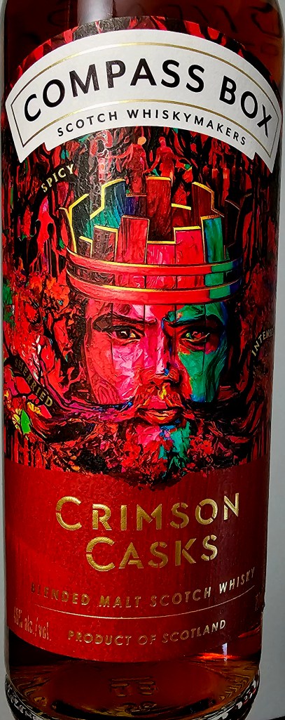 Bottled at 92 proof (46% ABV), Crimson Casks is non-chill filtered, not colored, and has no age statement. It is a blend of eight scotch single malts from a variety of distilleries including Glen Moray, “a distillery near the town of Aberlour” (probably Aberlour), Teaninich Distillery, and Benrinnes Distillery. Four of those eight single malts are aged in first-fill Oloroso Sherry casks; one is aged in a first-fill sherry cask (the exact type of sherry isn’t specified); one is aged in a refill Spanish red wine barrique; one is aged in a heavy toast custom-made French Oak barrel; and one was aged in a first-fill American White Oak ex-bourbon barrel. Oloroso Sherry cask-aged single malts make up 66.3% of the Crimson Casks blend and that is unmistakable in both the aroma and flavor profiles.