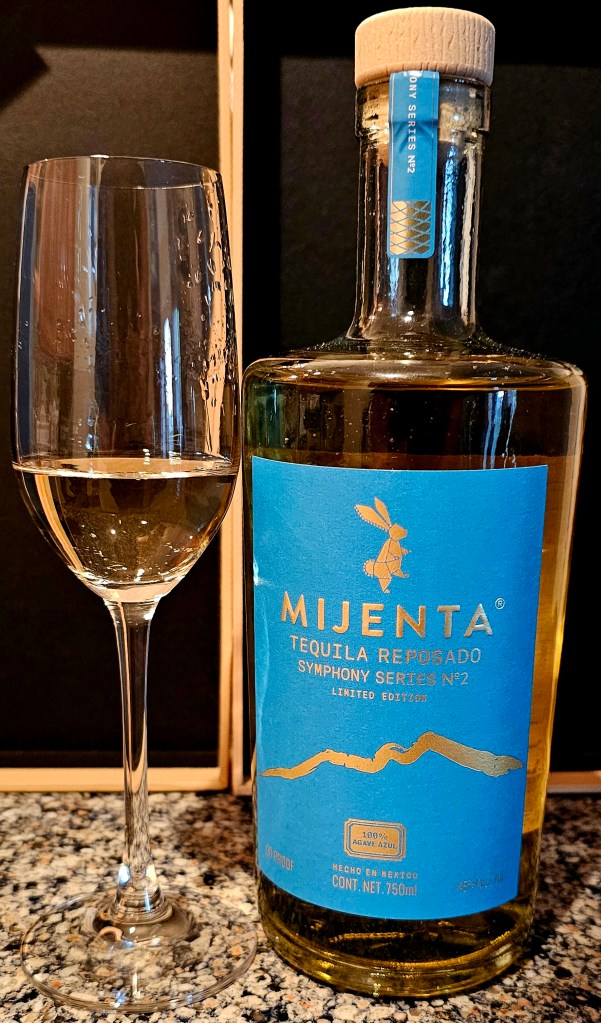 Overseen by master distiller Ana María Romero Mena and produced at distillery Casa Tequilera de Arandas (NOM 1499) in Arandas, Jalisco, the Mijenta Symphony Series No. 2 is made using fully mature Blue Weber agave cooked in low pressure autoclaves. The aguamiel is extracted using a roller mill and is fermented in open-air stainless steel tanks before being 2x-distilled in a copper pot still. The reposado is aged for eight months in custom-made “symphony” barrels made from American White Oak from Virginia, Minnesota, Missouri, and Pennsylvania. It’s brought to bottling proof (95 proof/45% ABV) using deep well water. Mijenta uses sustainable materials including recycled glass, caps made from biopolymer of sugar cane fiber, and a box made from FSC-certified cardboard.