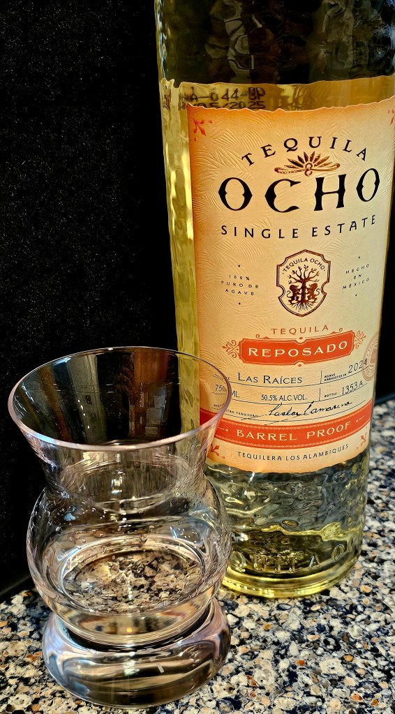 Produced at distillery Tequilera Los Alambiques (NOM 1474) in Arandas, Jalisco, by master distiller Carlos Camarena, this high proof reposado, like all of Tequila Ocho’s releases, is made with mature, 7-10-year-old Blue Weber agave cooked in stone/brick ovens (hornos) for 48 hours. The aguamiel is extracted using a roller mill and wild yeast is used to ferment the mosto in open-air wood tanks for 100 hours. The tequila is 2x-distilled before being aged for 6 months, much longer than the 9 weeks of the brand’s regular reposados. It is bottled at 101 proof (50.5% ABV).